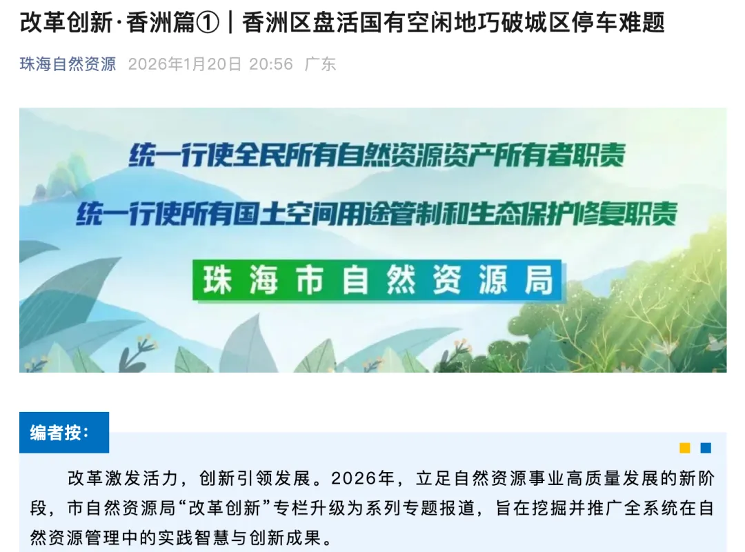 根据@珠海自然资源 1月20日消息,2025年5月,市自然资源局香洲分局创新出台《关于利用国有空闲地临时作为公共停车场的指导意见》,推动国有空闲地从“闲置低效”向“高效利用”转变。