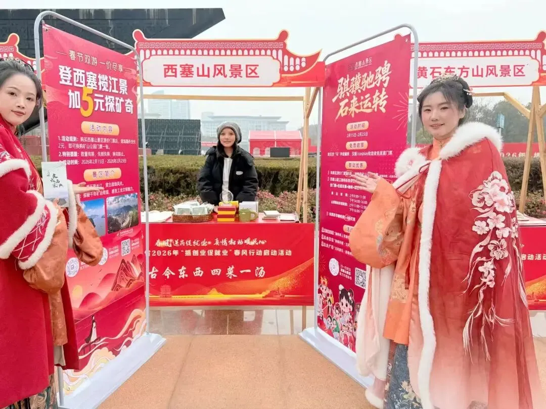 2月4日9:00,黄石市人民广场将迎来湖北省2026年“抓创业促就业”春风行动启动活动,200余家企业带来10000+就业岗位,更有超多人气活动齐聚!而西塞山景区也将携“骐骥驰骋·石来运转” 春节限定活动重磅亮相现场,找工作、领福利、囤新春出游攻略一站搞定,千万别错过~