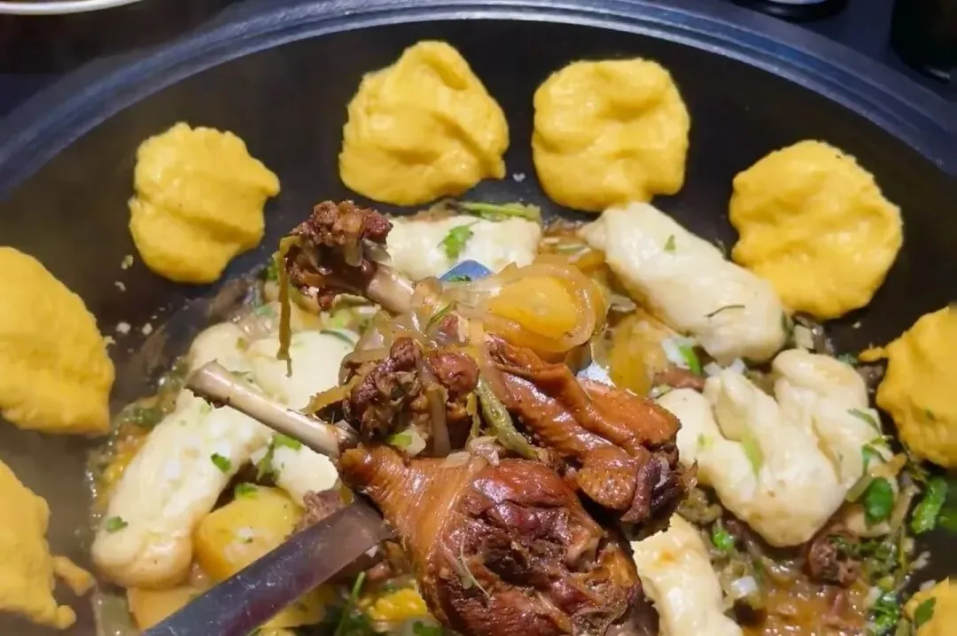 特色菜:铁锅炖大鹅(配土豆、宽粉)、贴饼子、酸菜白肉血肠
