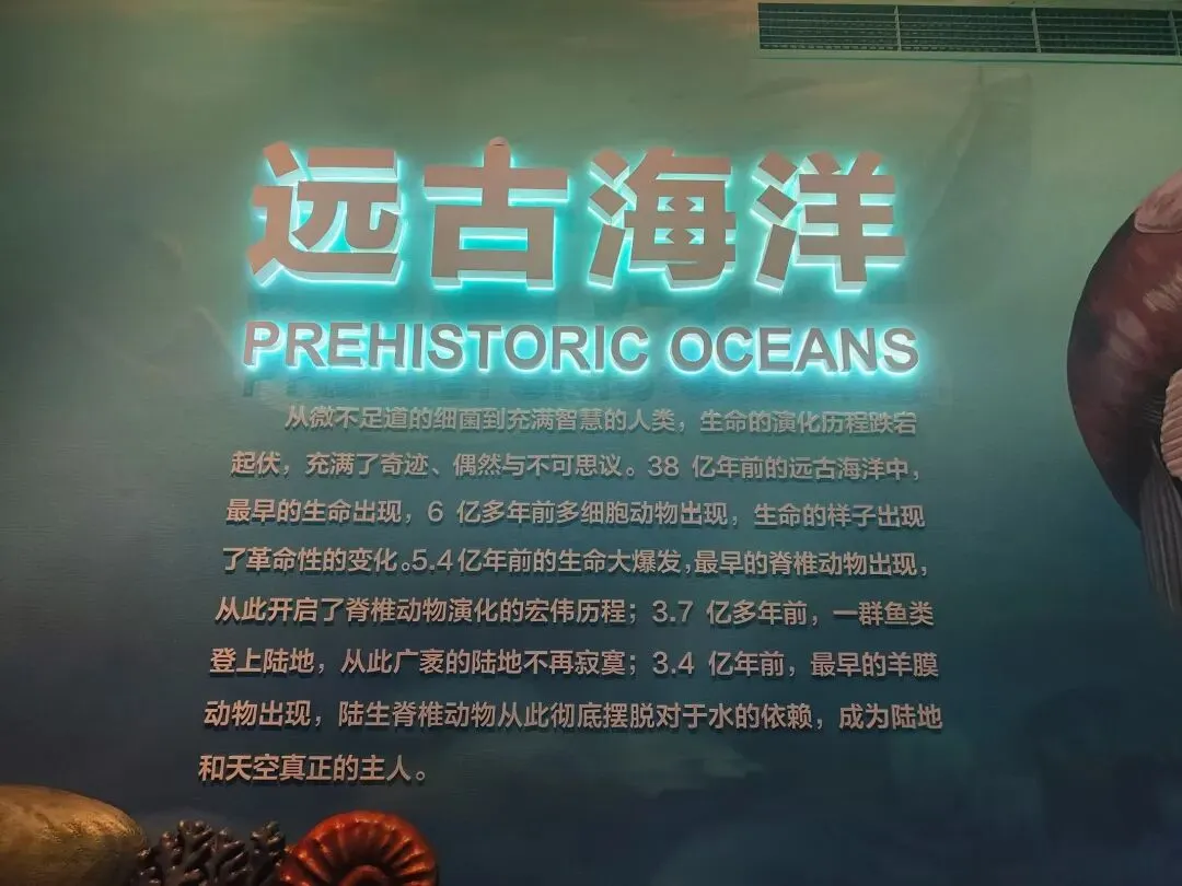 聚焦生命在海洋中的早期演化历程,重点展示了“脊椎的出现”、“颌的出现”等关键演化事件。展厅利用多媒体与场景复原技术,生动重现了四足动物登陆的伟大瞬间。展品包括已知最早的脊椎动物之一“昆明鱼”、已知最早头尾保存完整的有颌鱼类“奇迹秀山鱼”等重要化石,揭示了远古海洋生命变革的壮阔图景。