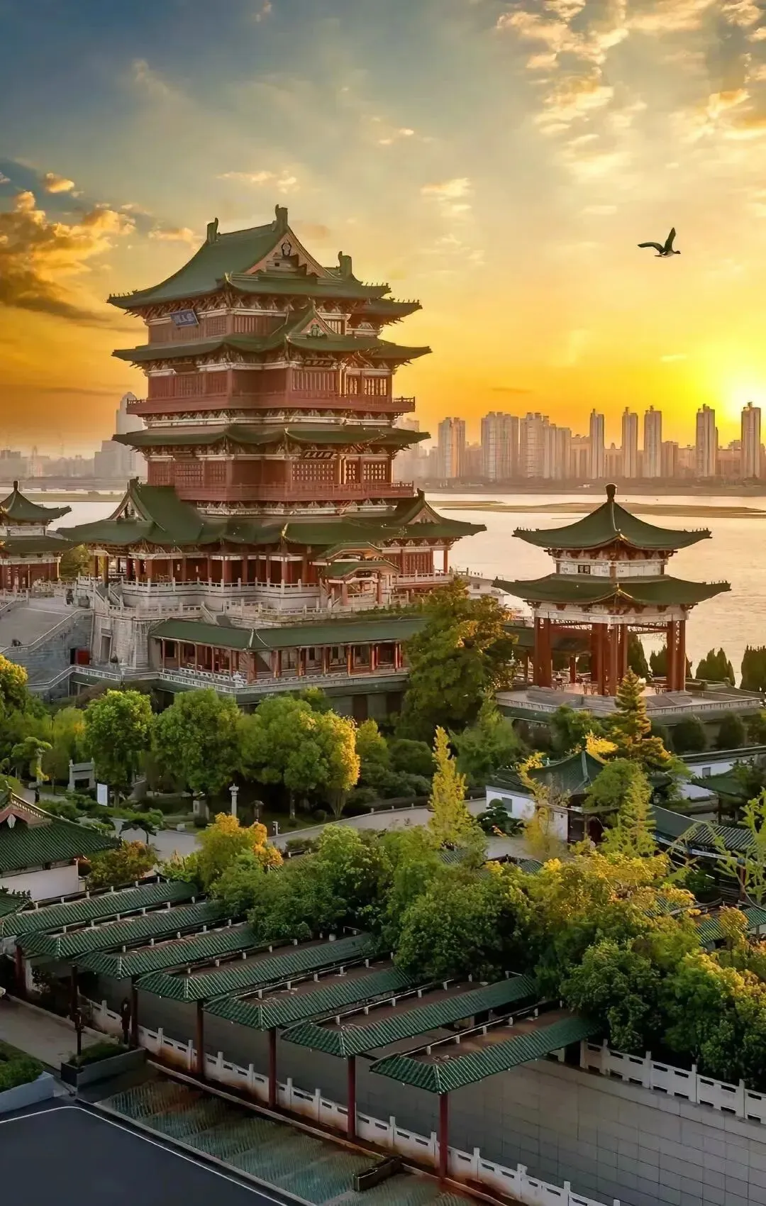 1. 主楼参观:滕王阁主阁高57.5米,采用"明三暗七"建筑格局,内部七层分别展示不同主题文化。建议重点游览三、五层明层,可俯瞰赣江全景,傍晚时段能观赏"落霞与孤鹜齐飞,秋水共长天一色"的经典景观。