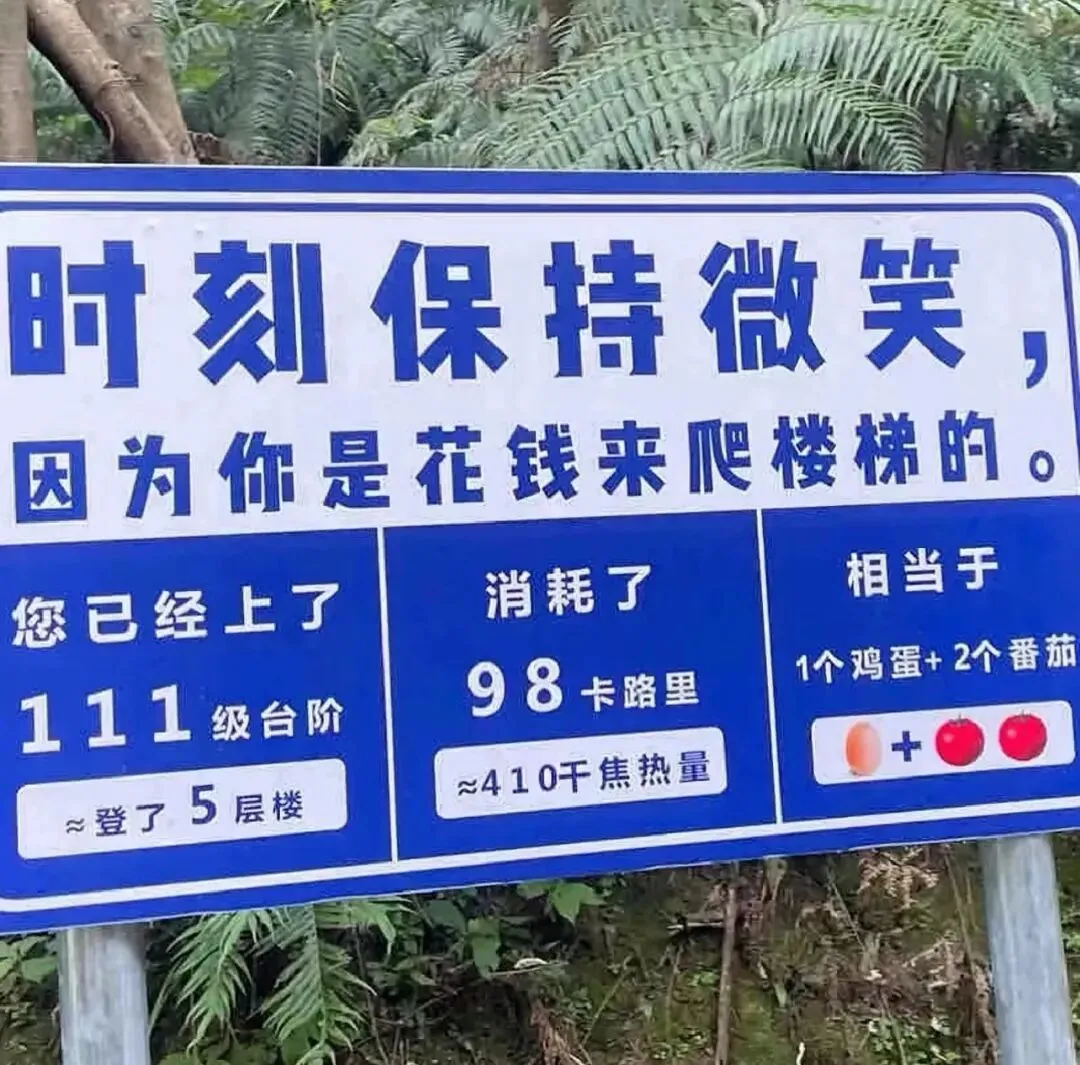“时刻保持微笑,因为你是花钱来爬楼梯的。”先自嘲,化解情绪。