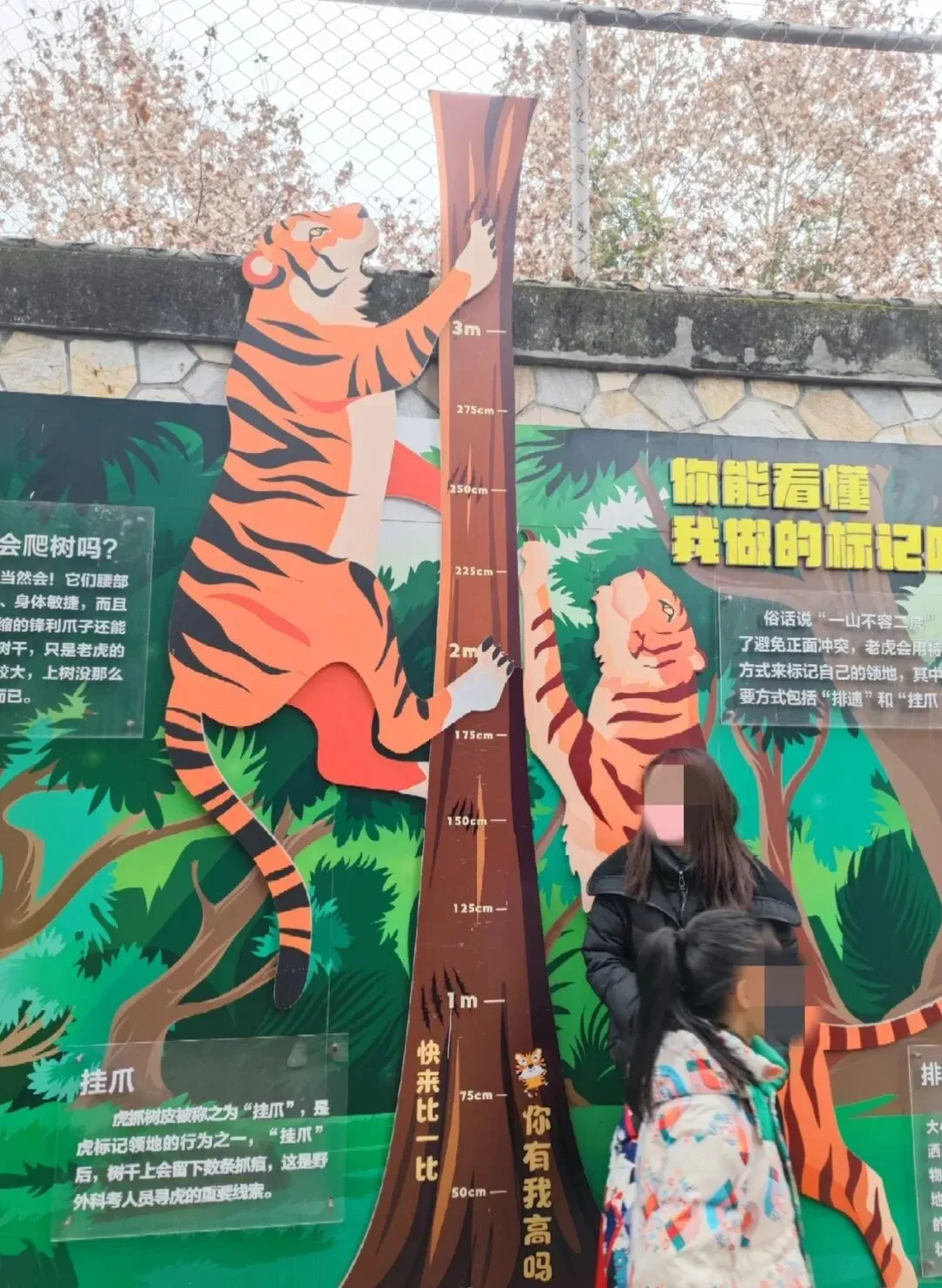 用老虎抓痕当尺子,把抽象的“3米高”变成孩子可以站过去“比一比”的直观体验。