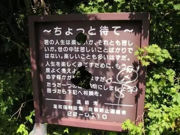 在入山前甚至有牌子写着:“你的生命是你的父母给你宝贵的东西。想想你的父母,兄弟姐妹和你的孩子,你不是独自一人面对难关的。”