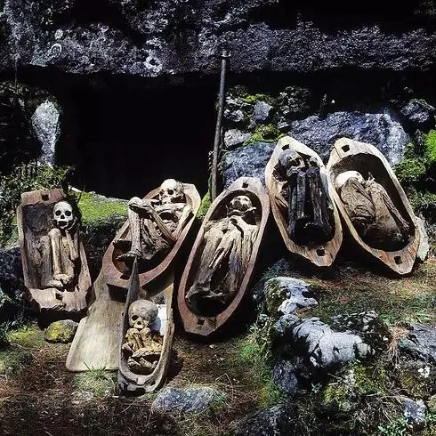 这里的木乃伊被称为“火木乃伊”,意指在明火中烤干自己亲人的尸体。一直到今天这些木乃伊都没有被人碰过,还是被安稳的葬在这里。