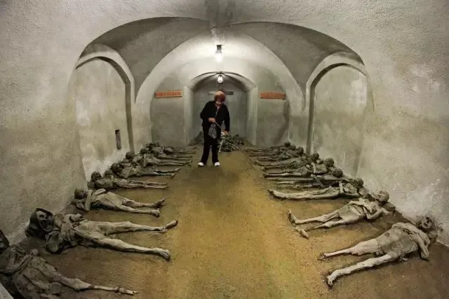 在18世纪末,僧侣和宗教秩序的支持者被掩埋在这里。由于特殊的通风系统和岩石的组合物,这些遗体成为了木乃伊。