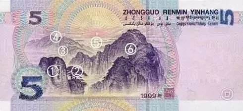 在这些图案绝大部分都是单一实地取景,而5元的泰山图案却是个例外,是一个组合图,印象中就看到过“五岳独尊”的石刻,其他的真没仔细看过。