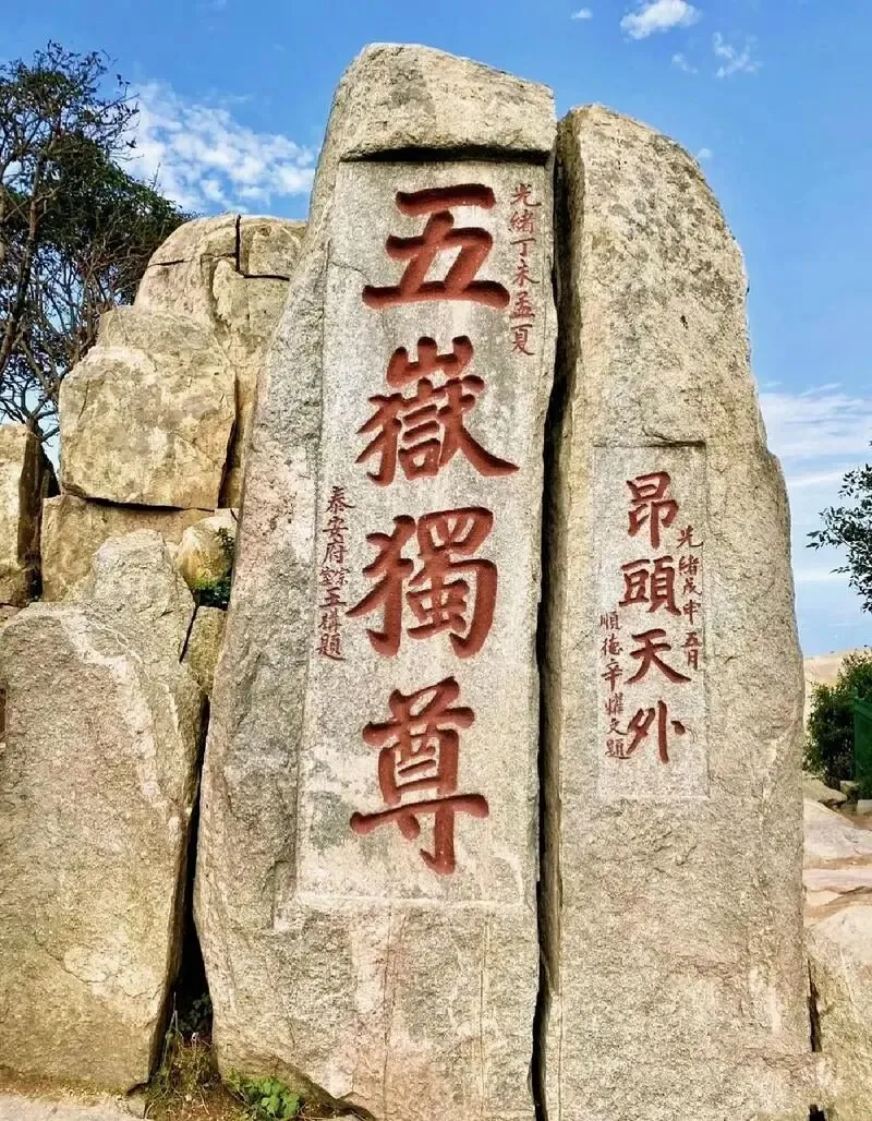 “五岳独尊”石刻就在玉皇顶的下面,每次经过这里都人满为患,打卡的人拥挤不堪,旁边的“擎天捧日”却很少有人关注。