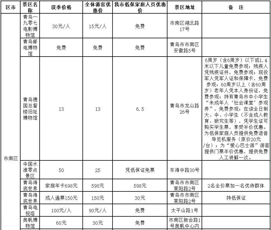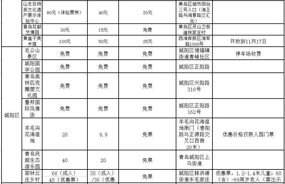 11月起,青岛50多家景区免费!半价!大优惠!市北这5家景区也在内(名单)