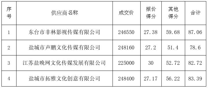 成交供应商名称:东台市非林影视传媒有限公司
