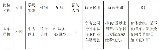 所有招聘岗位综合要求:身体健康,遵纪守法,品行良好,工作责任心强,爱岗敬业,服从安排,具有良好的职业道德,无违法犯罪记录。