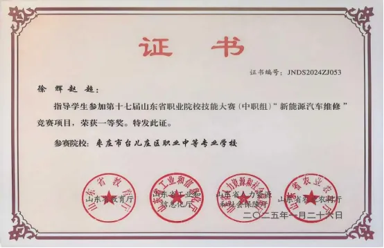 成功承办2025年山东省轻工纺织大类赛项及第十八届山东省职业院校技能大赛汽车运用与维修赛道,本校学子在该赛道勇夺省一等奖。一年来,学校技能竞赛屡创佳绩,获国家级奖项2项、省市级奖项多项,技能育人成效显著。