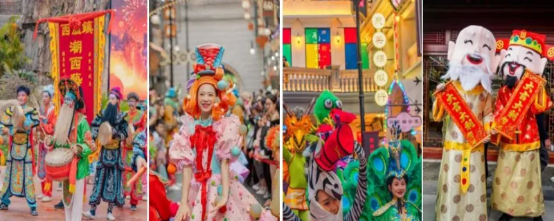 每天的巡游活动各具特色,有迎宾表演《花花世界》、科技气息《国潮机甲》、亲子互动《奇遇动物城》、民俗歌舞《潮汕英歌舞》等演出