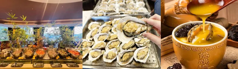 18:00【晚餐】享用晚餐《“位上:蒜蓉焗生蚝或金汤佛跳墙,二选一”泰式美食海鲜自助餐》,后自由活动、自由感受酒店配套设施…