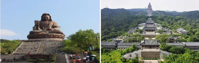 前往参观南海观音文化苑+宝峰寺(游览1.5小时左右),位于西樵山大仙峰顶,以观音文化为主题的大型景区。整个景区呈金字塔型,观音法相坐姿为61.9米,寓意观音成道于6月19日之意,是目前世界上最高最大的铜造观音像。