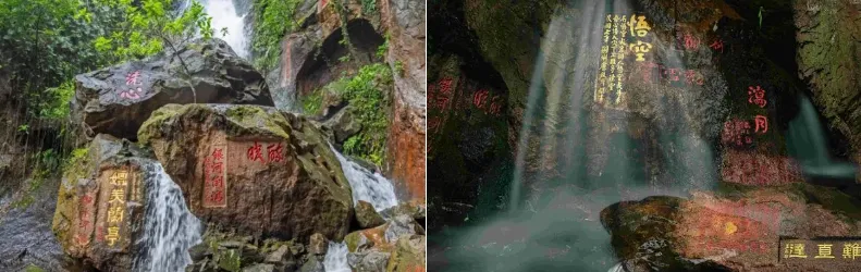 14:00 游览白云洞飞流千尺(约游览45分钟),“西樵云瀑”不但在西樵山是一个著名的景观和游客必登之地,而且早已经是清代羊城八景之一。在《黑神话:悟空》游戏中出现的东方古建筑和石刻的场景而在白云洞也能打卡东方古建筑的唯美亭楼;在白云洞的飞流千尺,站在洗心石仰望飞流千尺的壮观瀑布感受清代羊城八景之一的迷人魅力的同,还可以打卡崖峭壁刻有“悟空”的摩崖石刻场景