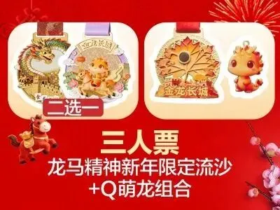 支持同一手机号完成三人同框打卡,一人轻松带多娃,双奖牌轻松get,带娃党狂喜。打卡完成获得Q萌龙1套 + 龙麻精神/马上来福(二选一)1枚。