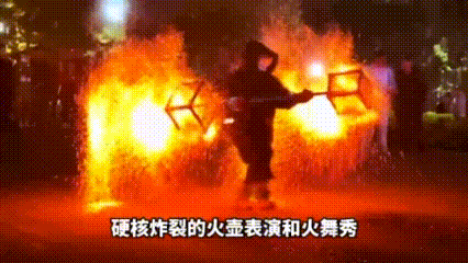 现场更有震撼的非遗表演,打铁花璀璨夺目,火壶火秀流光溢彩。