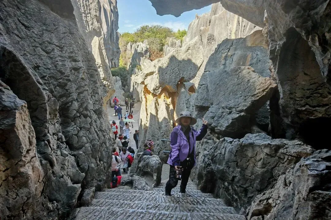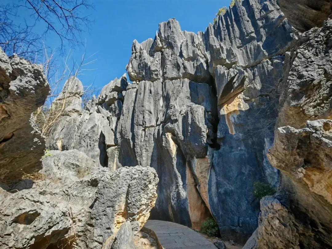 昆明石林风景区又称云南石林,位云南省昆明市石林彝族自治县境内,距昆明78公里。为石林喀斯特地貌景观,昆明两处5A景区之一。购票点离入景点要分明,入景点离观景点有距离,观景点内区间车票则可不用!大入小出可也!
