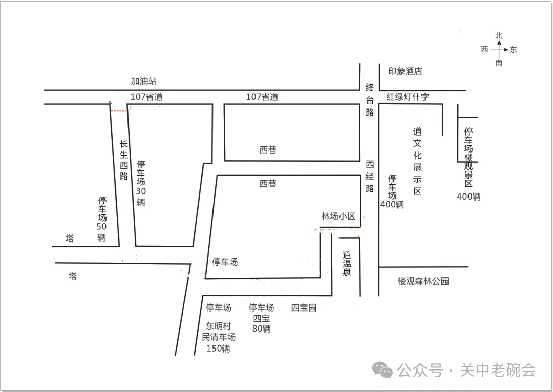 秦岭四宝科学公园及楼观台景区:107省道”秦岭四宝科学公园及楼观台景区”路段拥堵严重,沿107省道由东向西车辆可沿尚九路向北绕行至318县道(终南大道)通行,沿107省道由西向东车辆可沿马召镇转盘向北绕行至318县道通行。