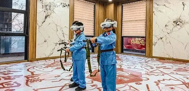 在景区核心区域,安平县精心打造的红色虚拟现实XR影院集娱乐、教育、培训、展示功能于一体。影院采用全虚拟建模场景与精准空间定位系统,观众头戴仅300克的国产双目8K XR设备,可在180度超宽视野中自由行走于虚拟场景。首映影片《红色回响·征途》观众可亲历一大会址、南昌起义、井冈山斗争、长征飞夺泸定桥、百团大战、敌后武工队行动等历史场景,通过枪械操作、密码破译、战术协同等30余项互动体验,完成从“旁观者”到“传承者”的身份转变,在声光电交织的多维叙事中感受革命火种从萌芽到燎原的征途。