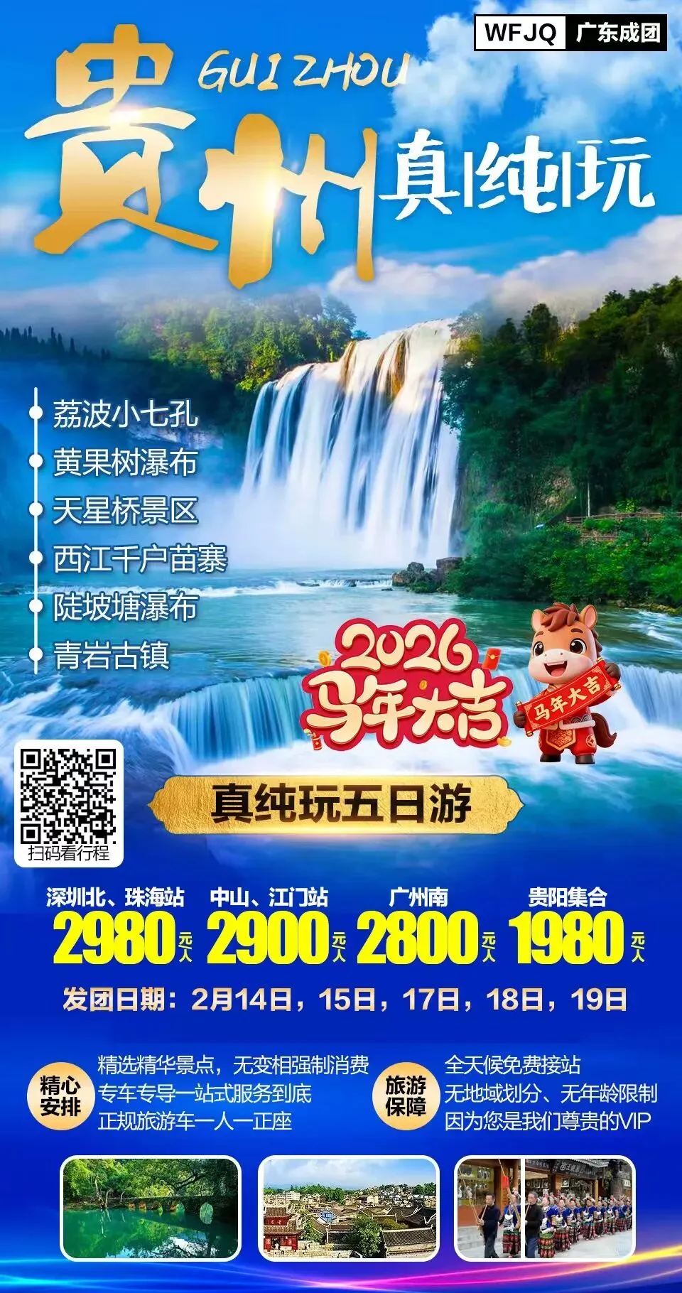 8、黄果树 小七孔 西江苗寨5天 2980元