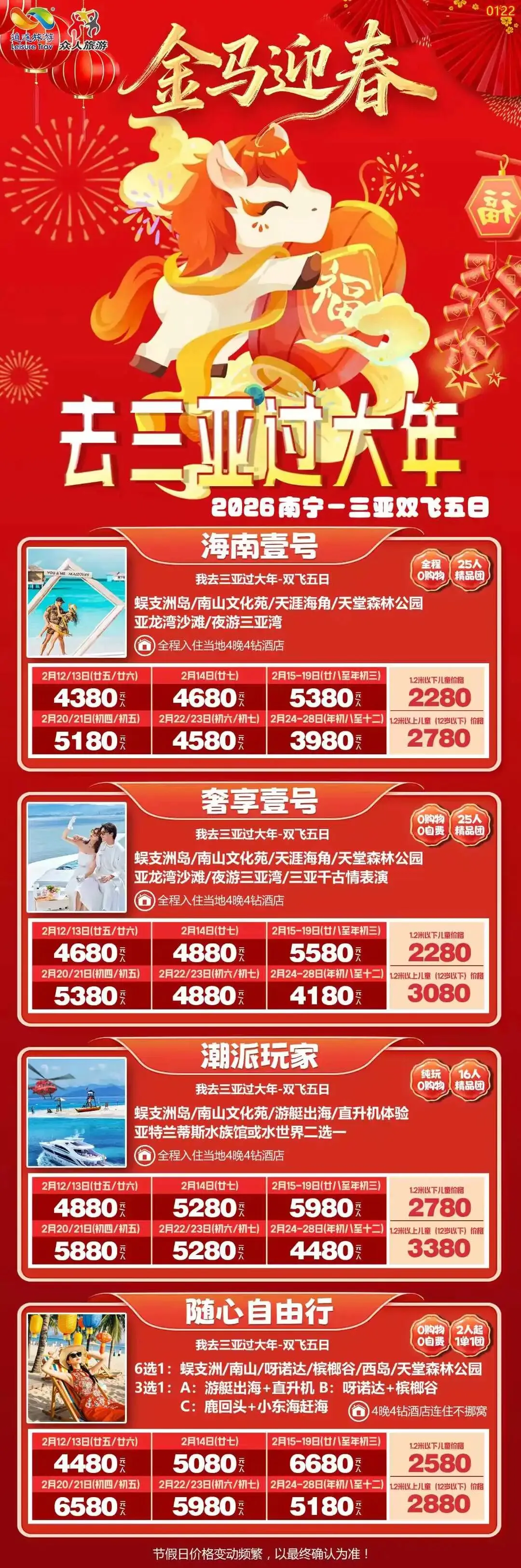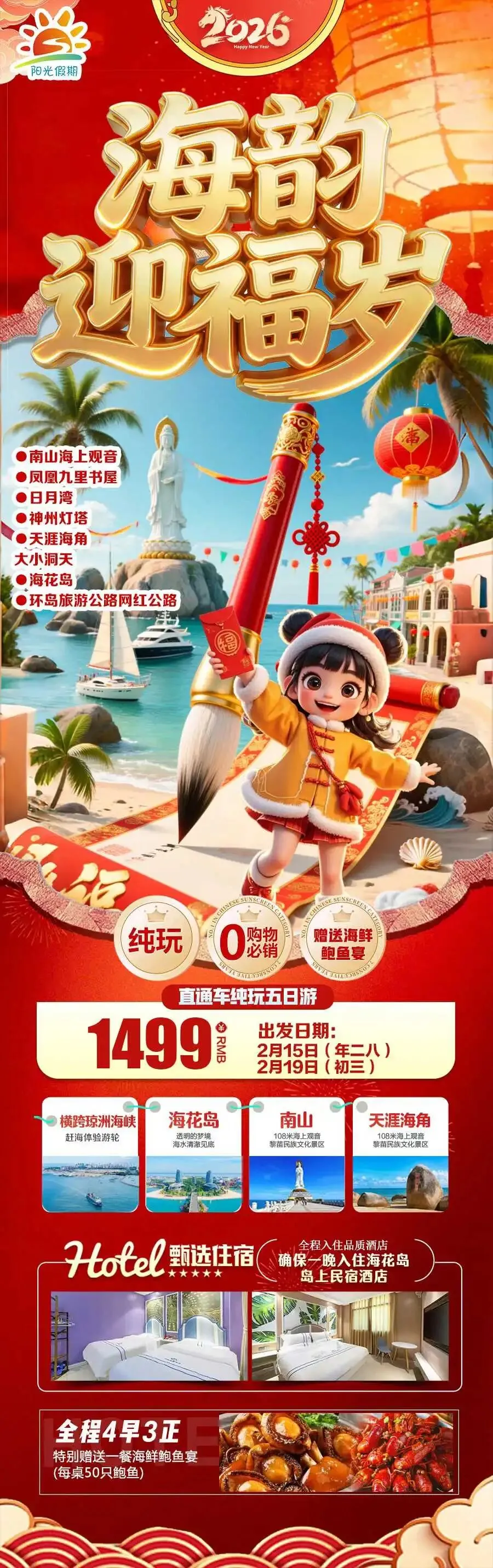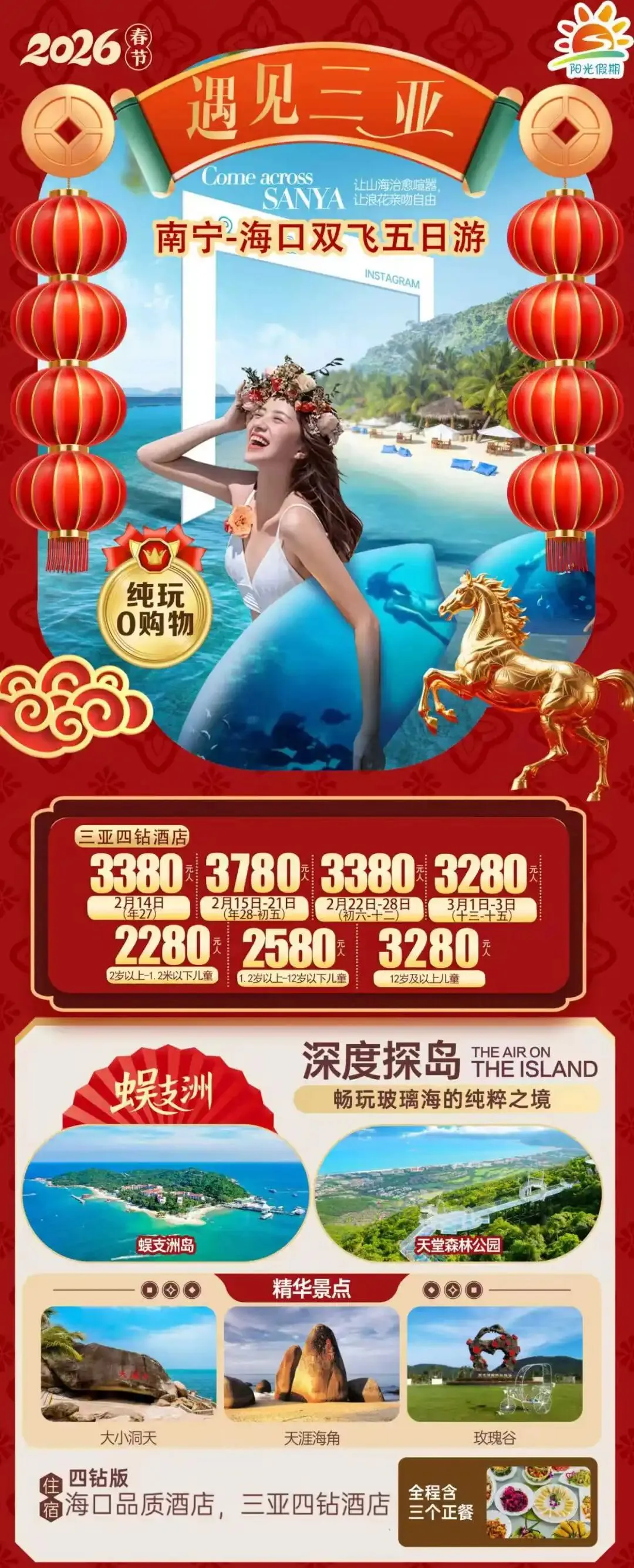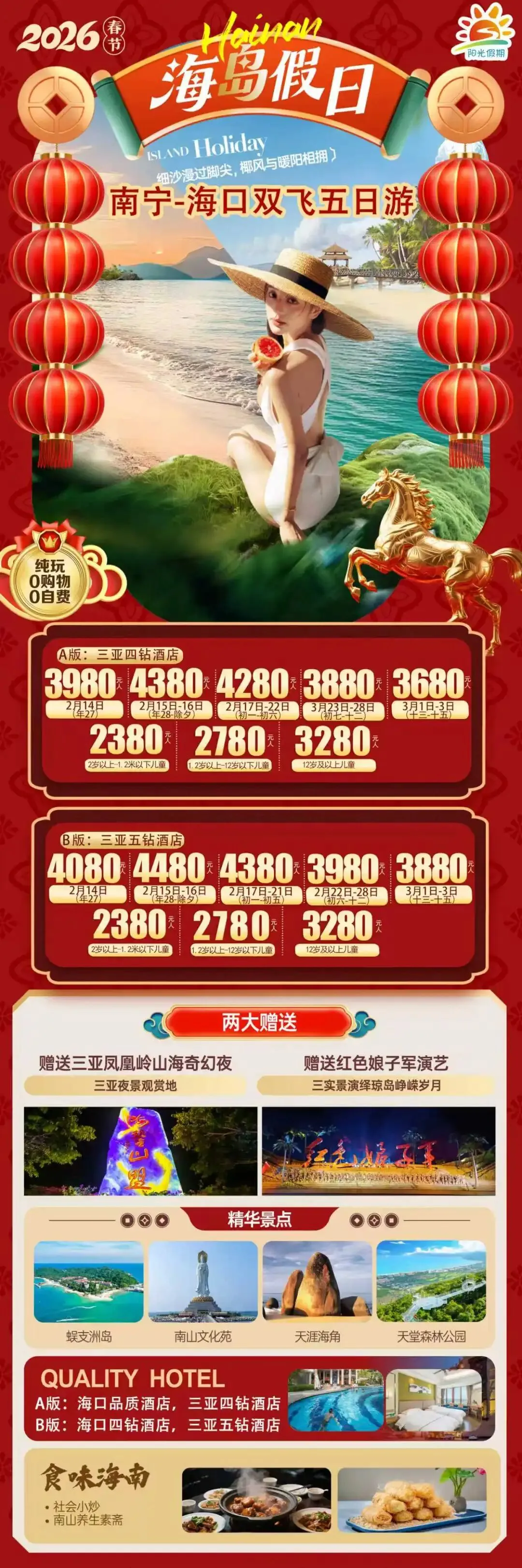 【海南】2月 春节&寒假 海南 旅游线路推荐 报名优惠!