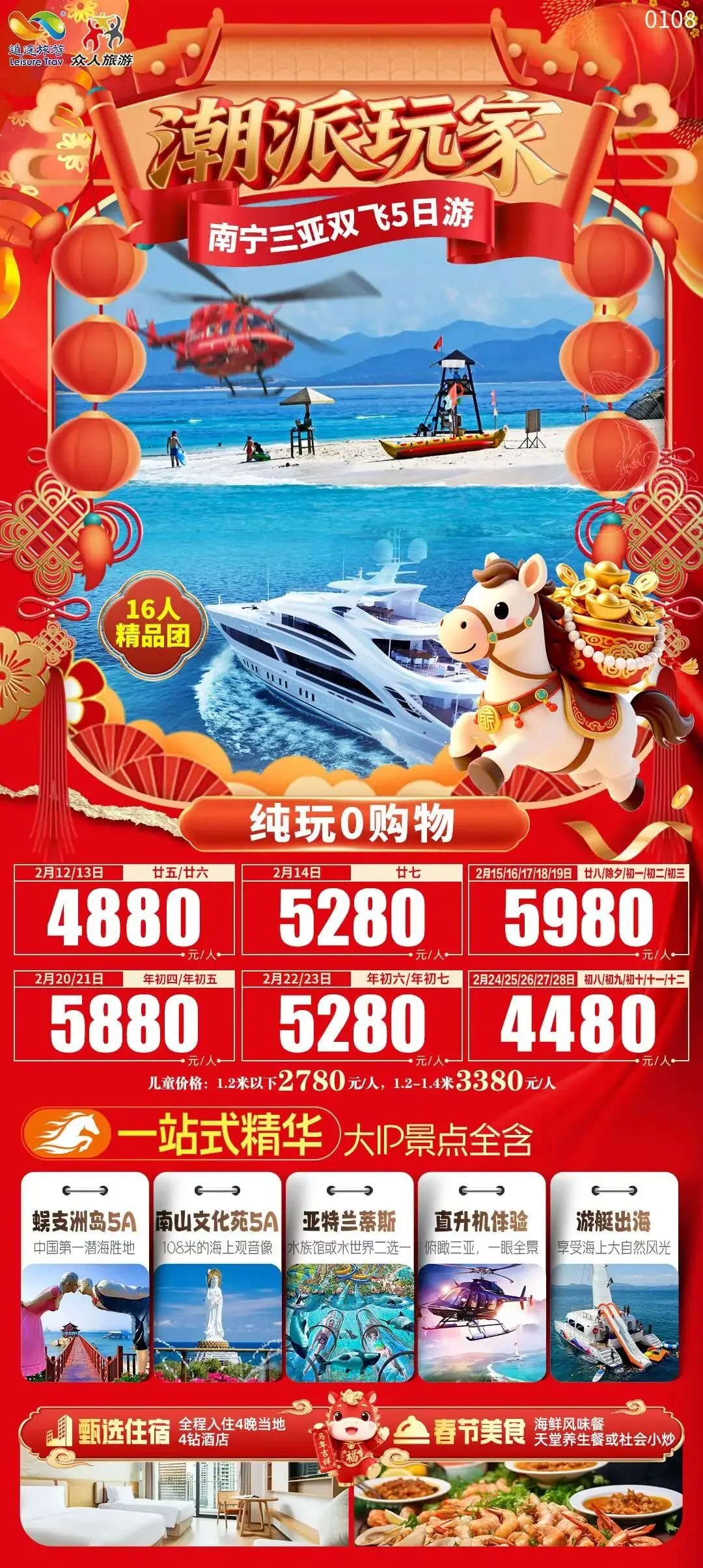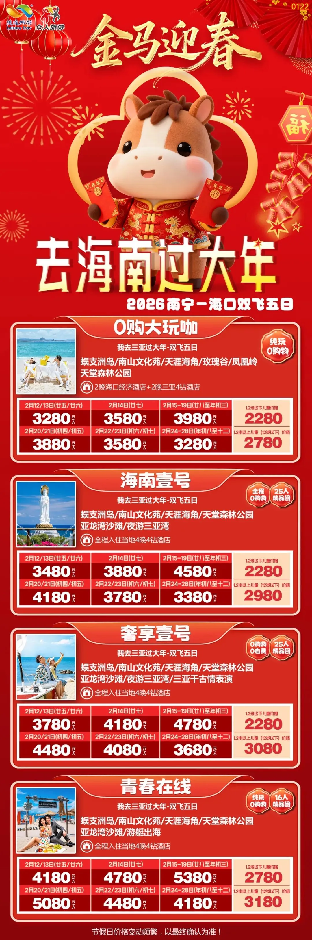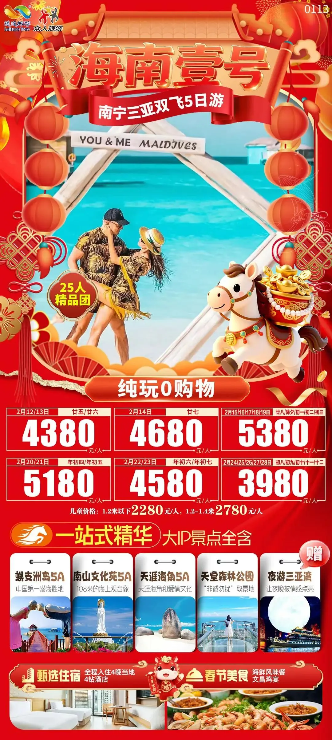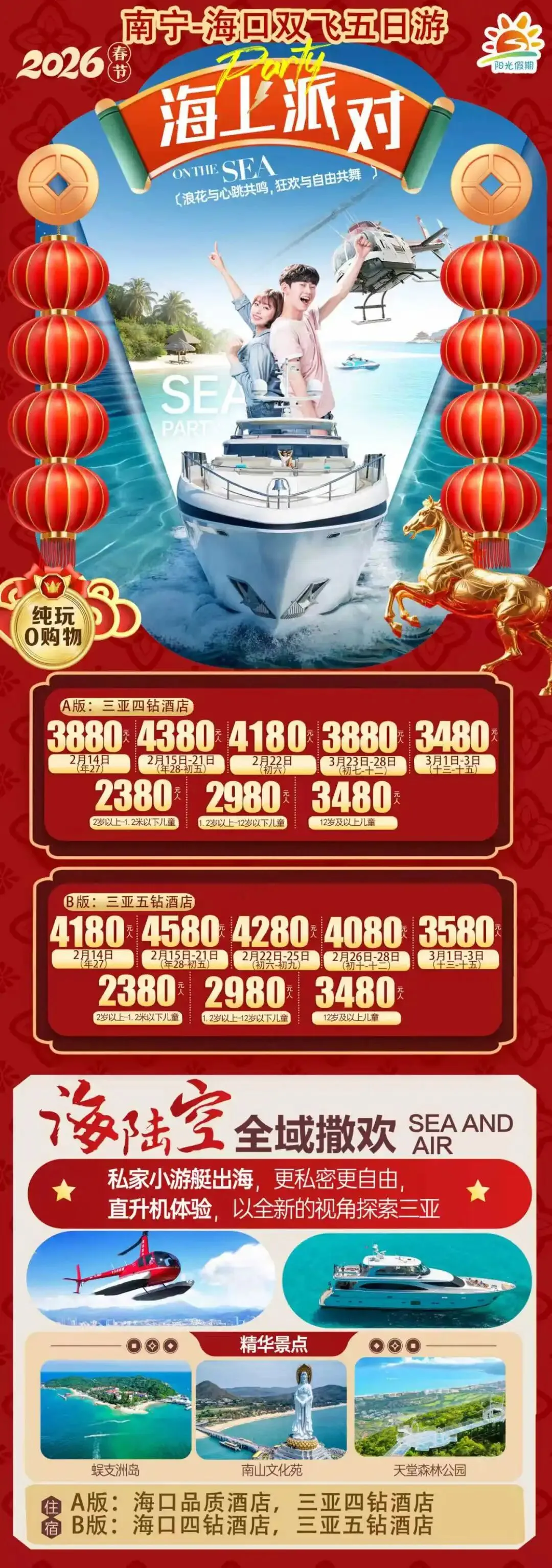 【海南】2月 春节&寒假 海南 旅游线路推荐 报名优惠!