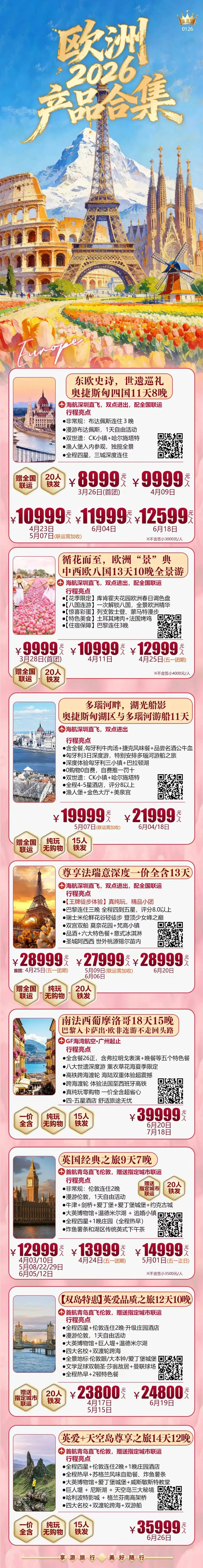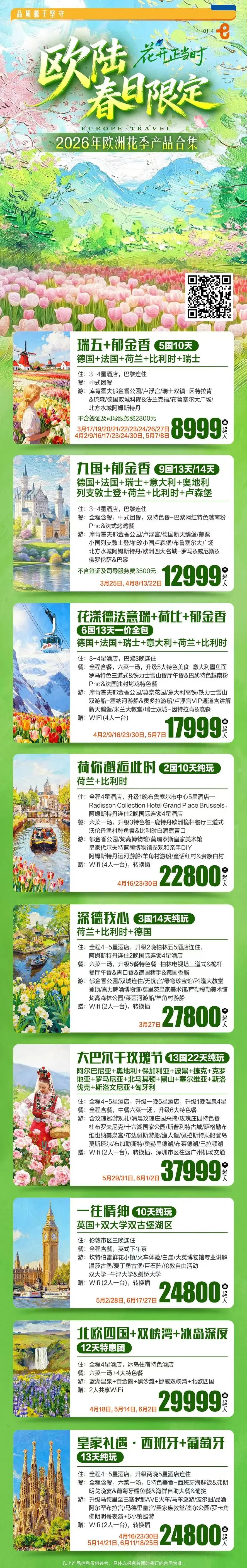 【欧洲】3-5月 欧洲旅游线路推荐 报名优惠!