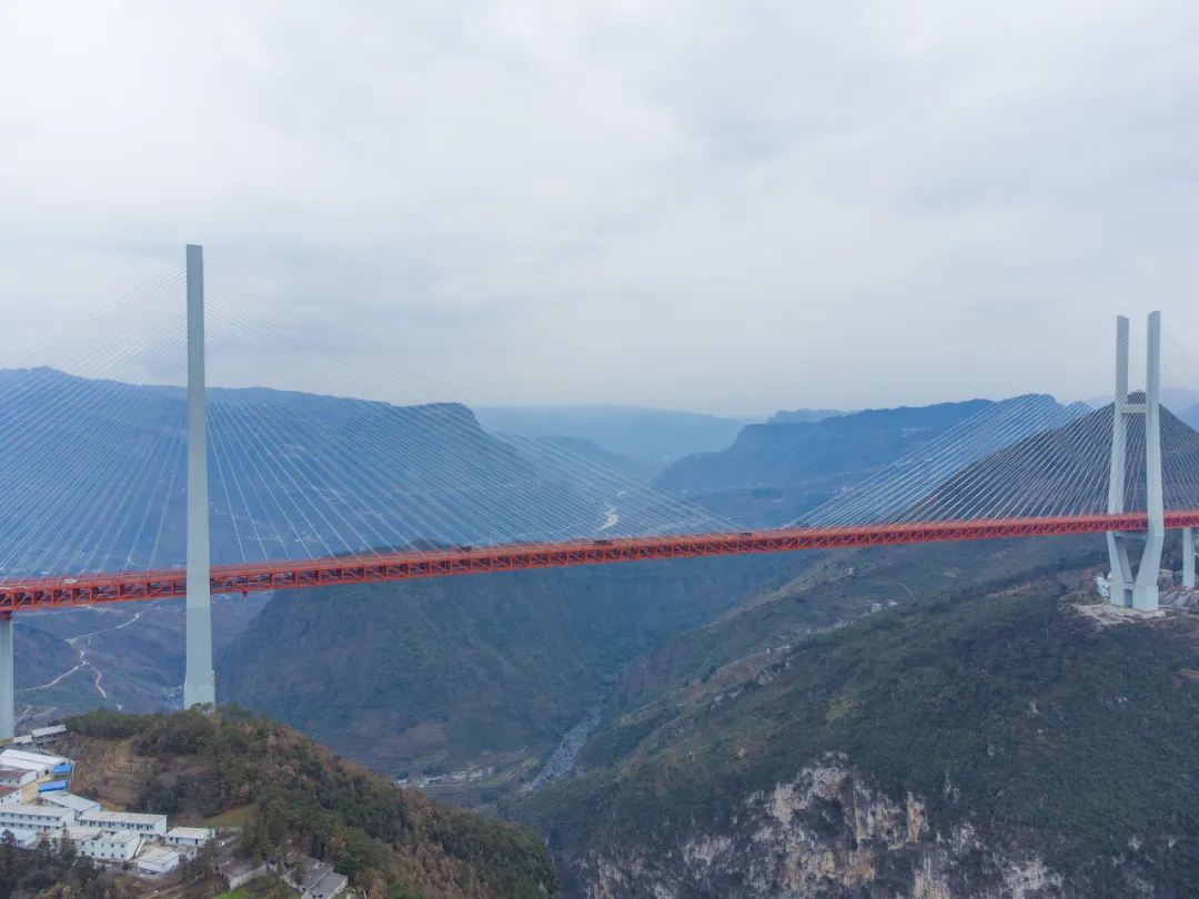 简介:北盘江第一桥地处云南省宣威市普立乡腊龙村与贵州省六盘水市水城县都格乡交界处,位于云南省宣威市普立乡尼珠河,是杭瑞高速公路控制性桥梁工程,坐落于滇东北的崇山峻岭中。大桥全长1341.4米,主跨720米,全桥桥跨布置为(80+88+88+720+88+88+80)(主桥)+3×34(引桥),为目前世界最大跨径的钢桁架梁斜拉桥。建成后北盘江第一桥以564米(1850英尺,相当于200层楼的高度)的垂高,比先前世界桥面最高的四渡河大桥高68米,成为当之无愧的世界第一高桥。登上大桥极目远眺,连绵的山脉、蜿蜒的河流尽收眼底,让人不禁感叹大自然的鬼斧神工和人类的伟大创造力。