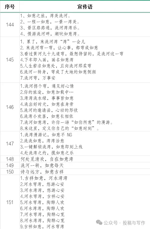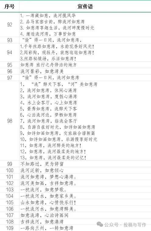 为进一步提升洮河如意湾景区旅游品牌知名度、美誉度与影响力,打造高辨识度文旅形象,洮河如意湾景区于2026年1月23日—1月31日面向全社会开展洮河如意湾景区宣传语征集活动,共收到投稿作品198条,得到社会各界积极响应。现将初选结果予以公示: