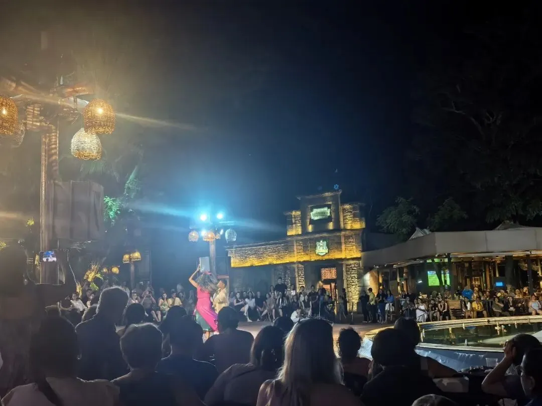 看完瀑布看鸟园,从鸟园出来后可以直奔三国界碑处,票价60,周一不开门。在这里和三国路标合影,欣赏落日。然后坐等晚上18点30分开始的文艺演出,演出就是各国风情的舞蹈,持续1个多小时,值回票价。