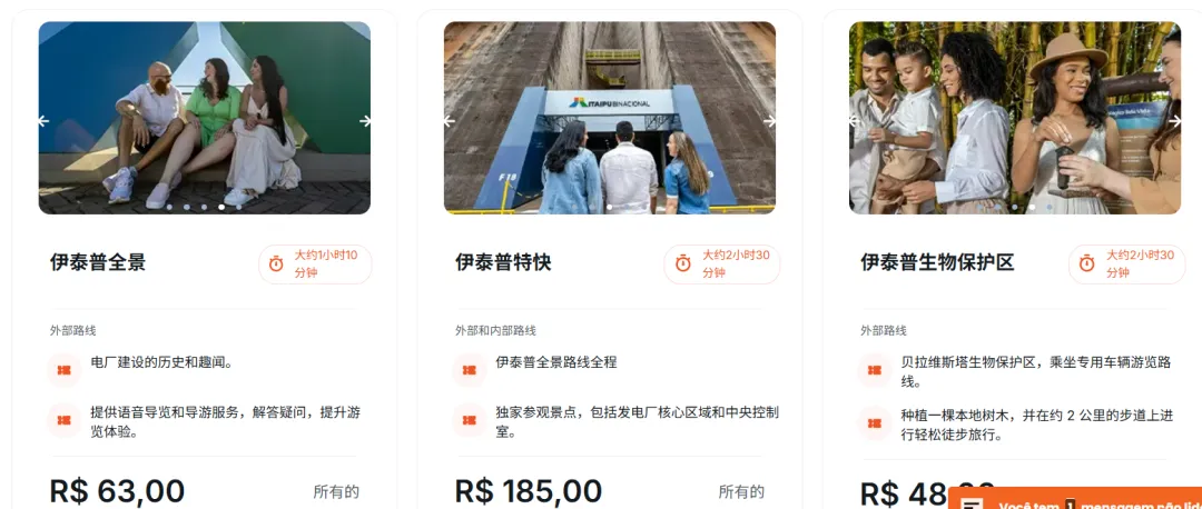 除此以外,我还去参观了著名的伊泰普水电站、承天寺、友谊大桥这三个景点。参观伊泰普水电站,基础价格是63,坐着游览车在水电站外围转一圈。185的是可以进入水电站内部参观一下。https://turismoitaipu.com.br/