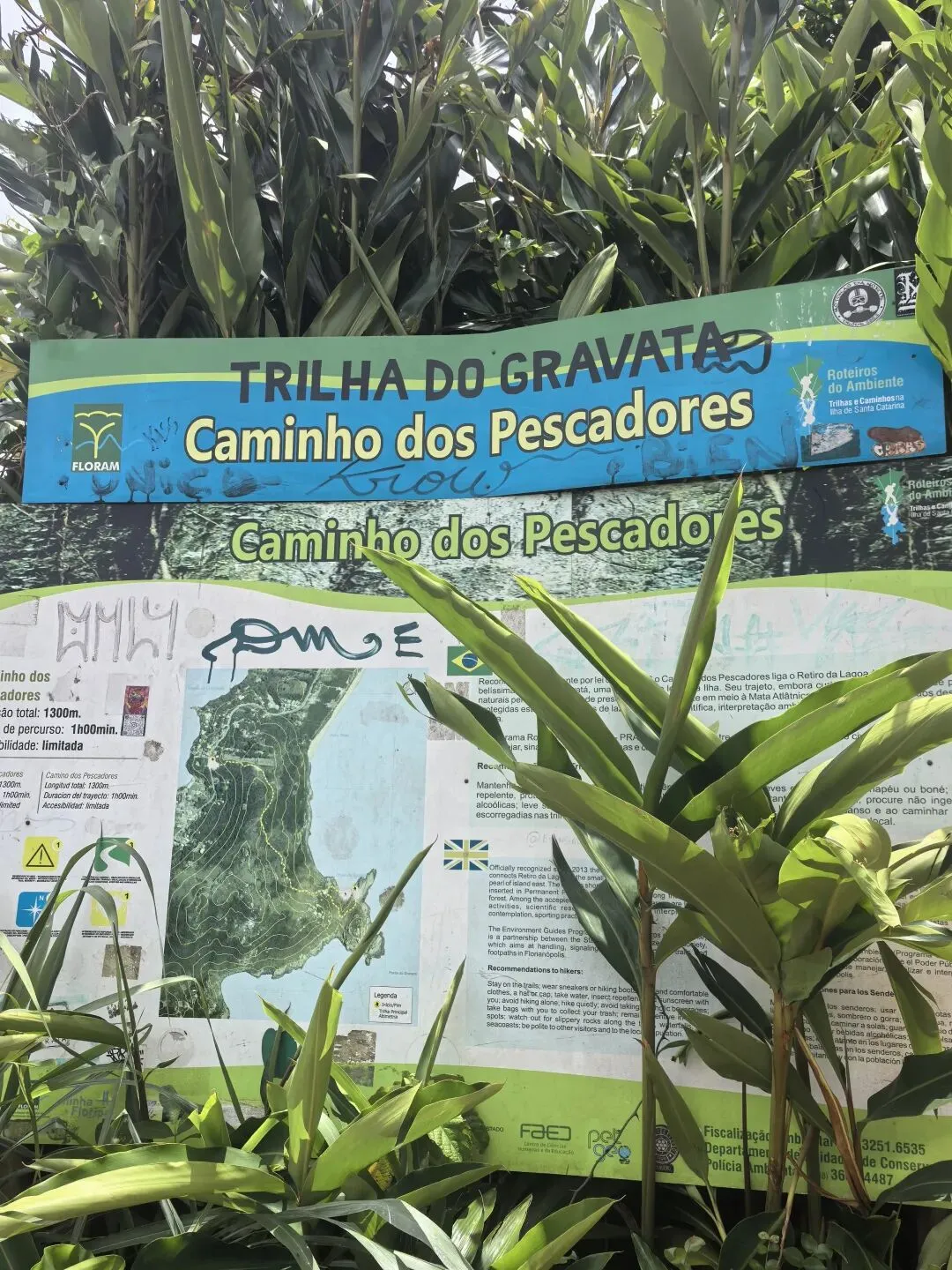 第一站是去徒步,Trilha Praia do Gravatá。这是一个比较经典的徒步路线,入口处有牌子介绍。总路程1300m,徒步时长1小时。紧邻着入口处的就是搞滑翔伞的旅行社,徒步路线中途会遇到滑翔伞活动的起降点。走到头就是Praia do Gravatá,沙滩不重要。重要的是你站在高处看海,那种山海之间的感觉颇有徒步东极岛的感觉。