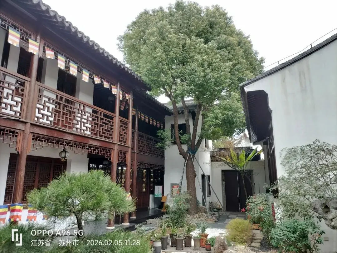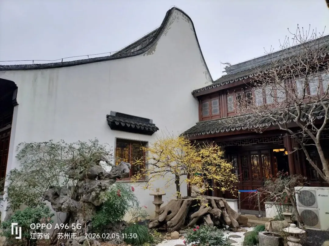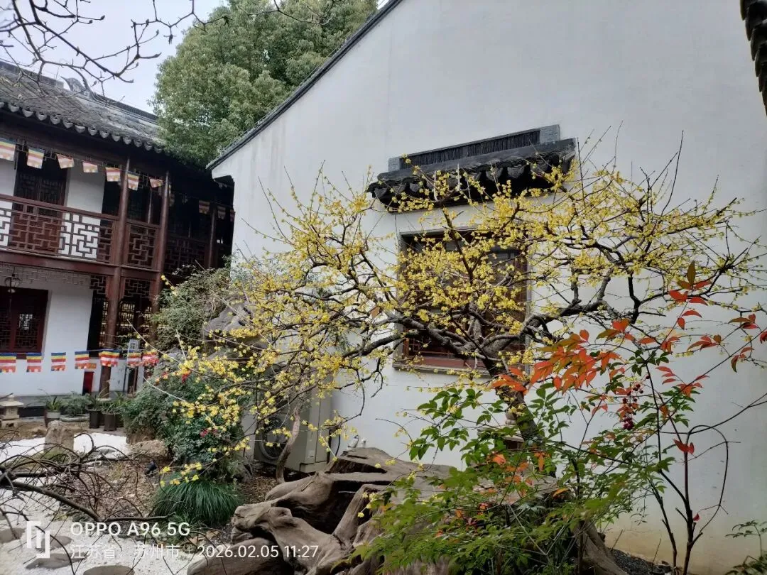 位于苏州古城菉葭巷的苏州佛教居士林,本是一处居家佛教徒集体修行和活动的公益性场所,因院内种植了腊梅,每年1月盛开,与院内白墙相映,极具禅意与国风美学,被誉为“苏州腊梅的天花板”,是苏州著名的腊梅观赏点。