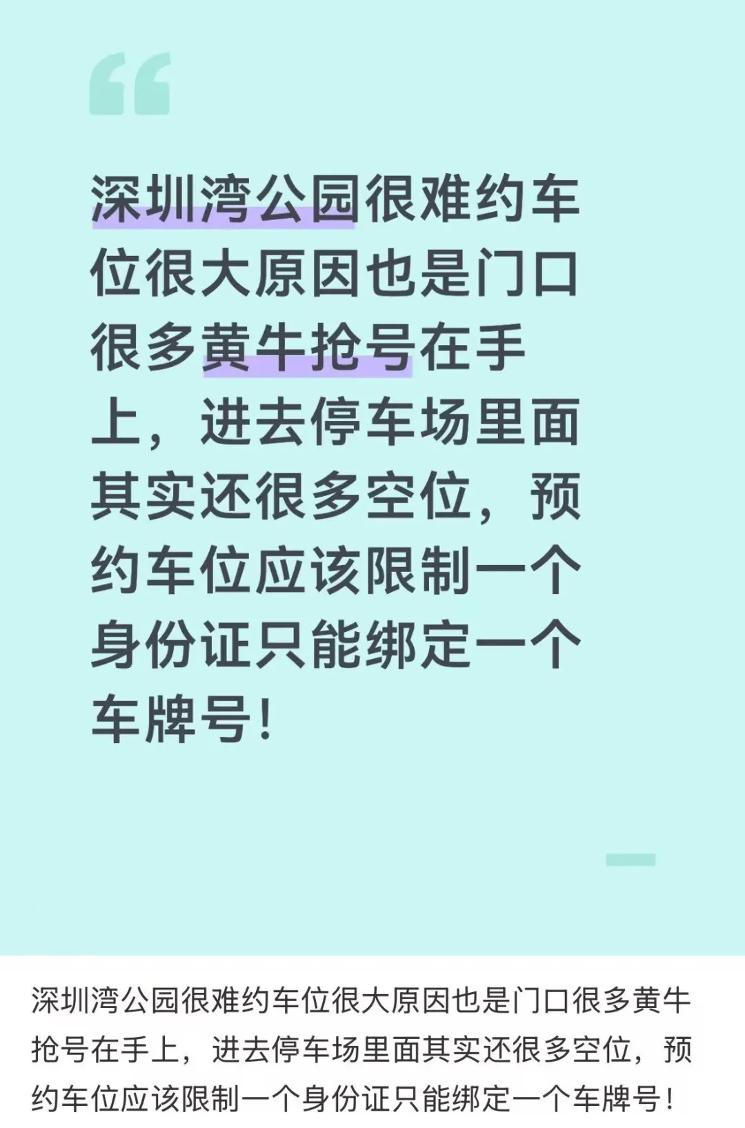 记者询问发现,此次政策调整的直接导火索是“黄牛”有偿代预约服务泛滥。记者通过公开查询的电话致电深圳湾公园管理方,工作人员坦言,试点取消预约,主要是为了应对黄牛问题。此前黄牛大量预约车位,导致普通市民通过正规渠道很难约到车位,投诉量很大。