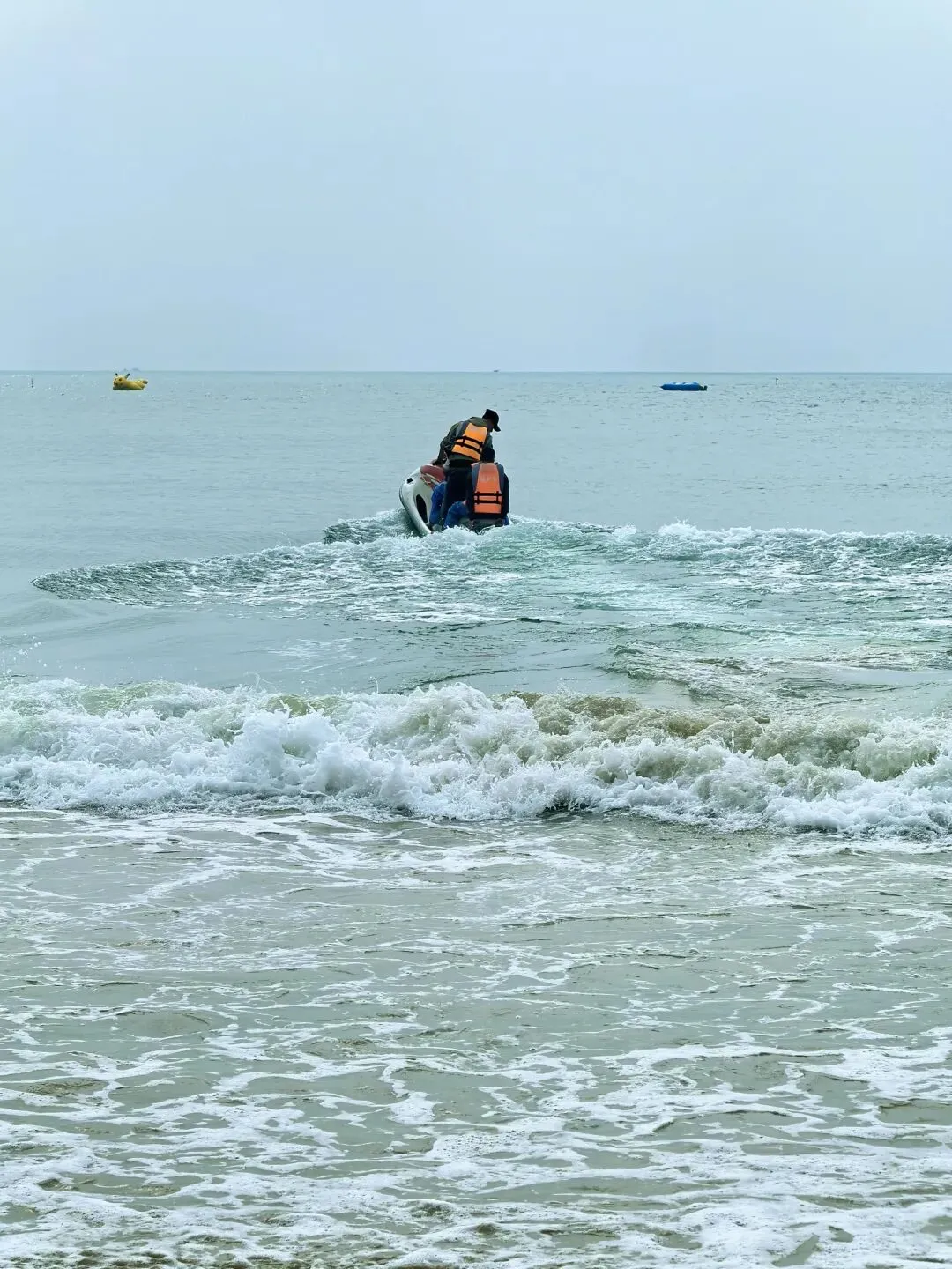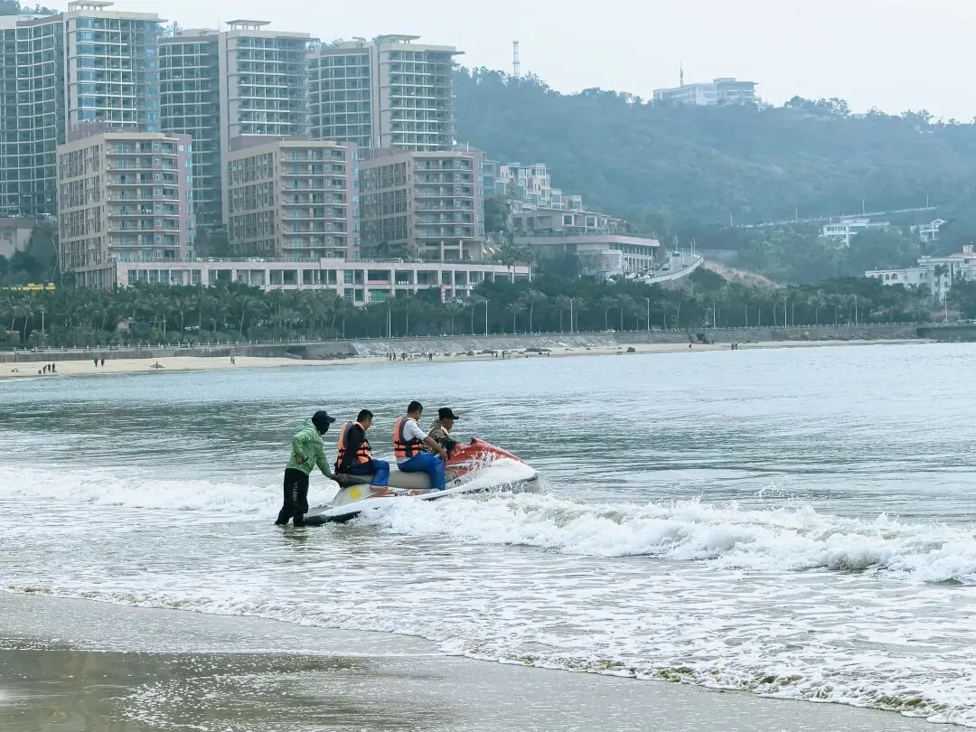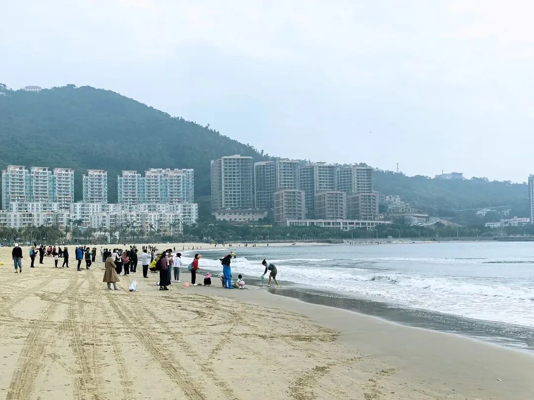 去海陵岛游玩,没人能忽视大角湾的知名度,所以这里是所有登岛游客必打卡之地。虽然已经看惯甚至看腻了海滩,大角湾的海滩还是魅力十足,令人忍不住要插足踏浪。游客们直觉回避被圈起来的收费区域,因为免费的开放区域足够大家游玩。这个冬季走过很多海滩了,这是我唯一看到依旧开展水上项目的景区,尽管只是组织游客乘坐摩托艇或渔船出海。