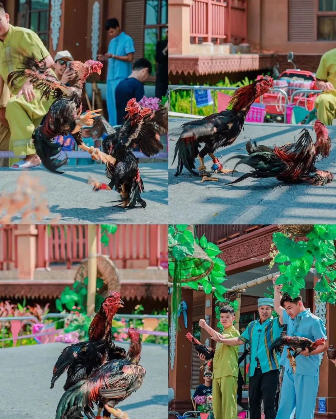 活动内容:傣族斗鸡,是傣家节庆欢聚时不可或缺的特色娱乐。斗鸡身形精干矫健,生就鹰钩利喙,性情勇猛刚烈。活动之时,可观这场古朴又热血刺激的斗鸡竞技,沉浸式体验傣乡独有的民俗乐趣。