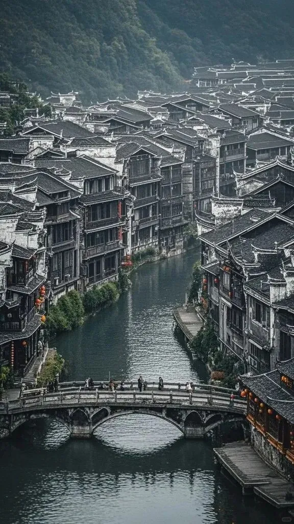 古城的灵魂,在于那条碧绿清澈的㵲阳河。它以一道完美的“S”形穿城而过,将古城天然划分为八卦图案,山水城浑然一体,被誉为“东方威尼斯”。您无需购买门票,就能漫步在光滑的青石板路上,穿过“歪门斜道”的古老巷弄,看沿河人家炊烟袅袅,生活气息扑面而来。