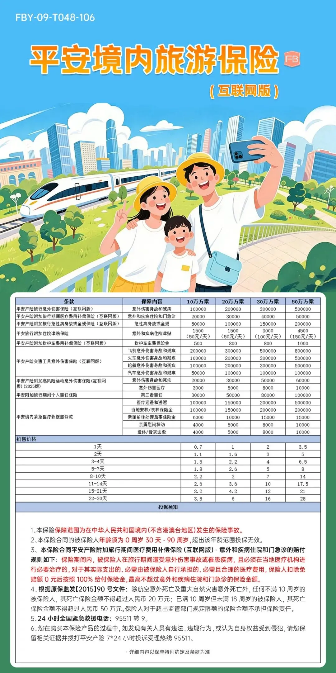平安境内旅游保险(互联网版)最低0.7元起/支持当天生效/最高50万保额/可扩展高风险运动