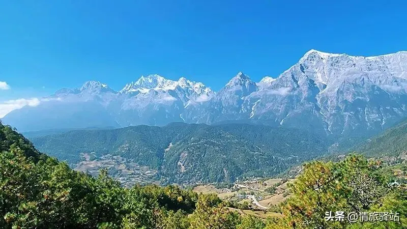 从山脚到山顶,有亚热带、温带、寒带等多级景观逐级。山脚的甘海子,是一片辽阔的牧场,草甸上龙胆兰、杜鹃盛放,海拔3200多米的云杉坪,更是纳西青年男女心中的圣地。在4506米的高度以上,可以沿着山间栈道近距离观赏冰川和主峰的雄姿。