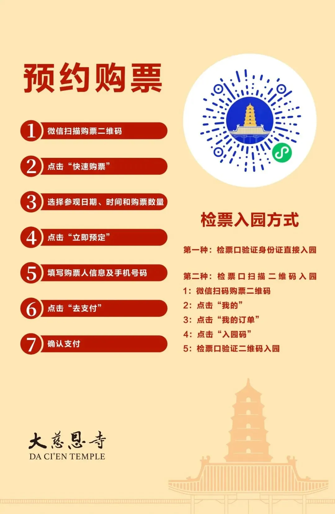 【西安旅游】大慈恩寺&大雁塔门票预订,开放时间为08:30-17:00,16:30停止售票