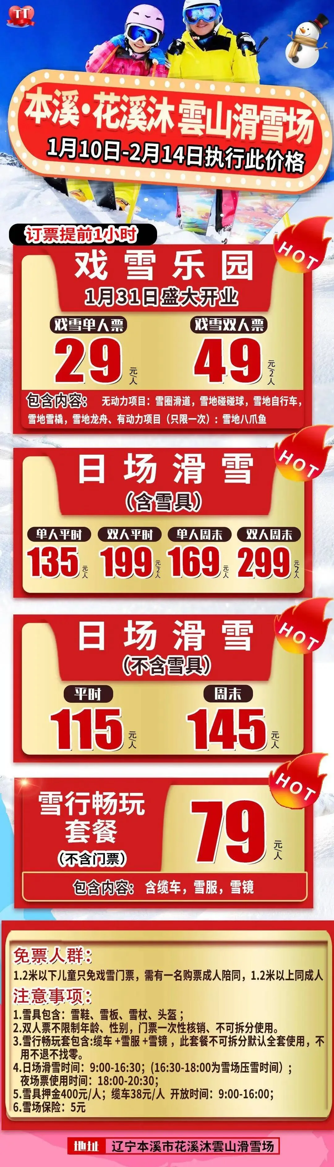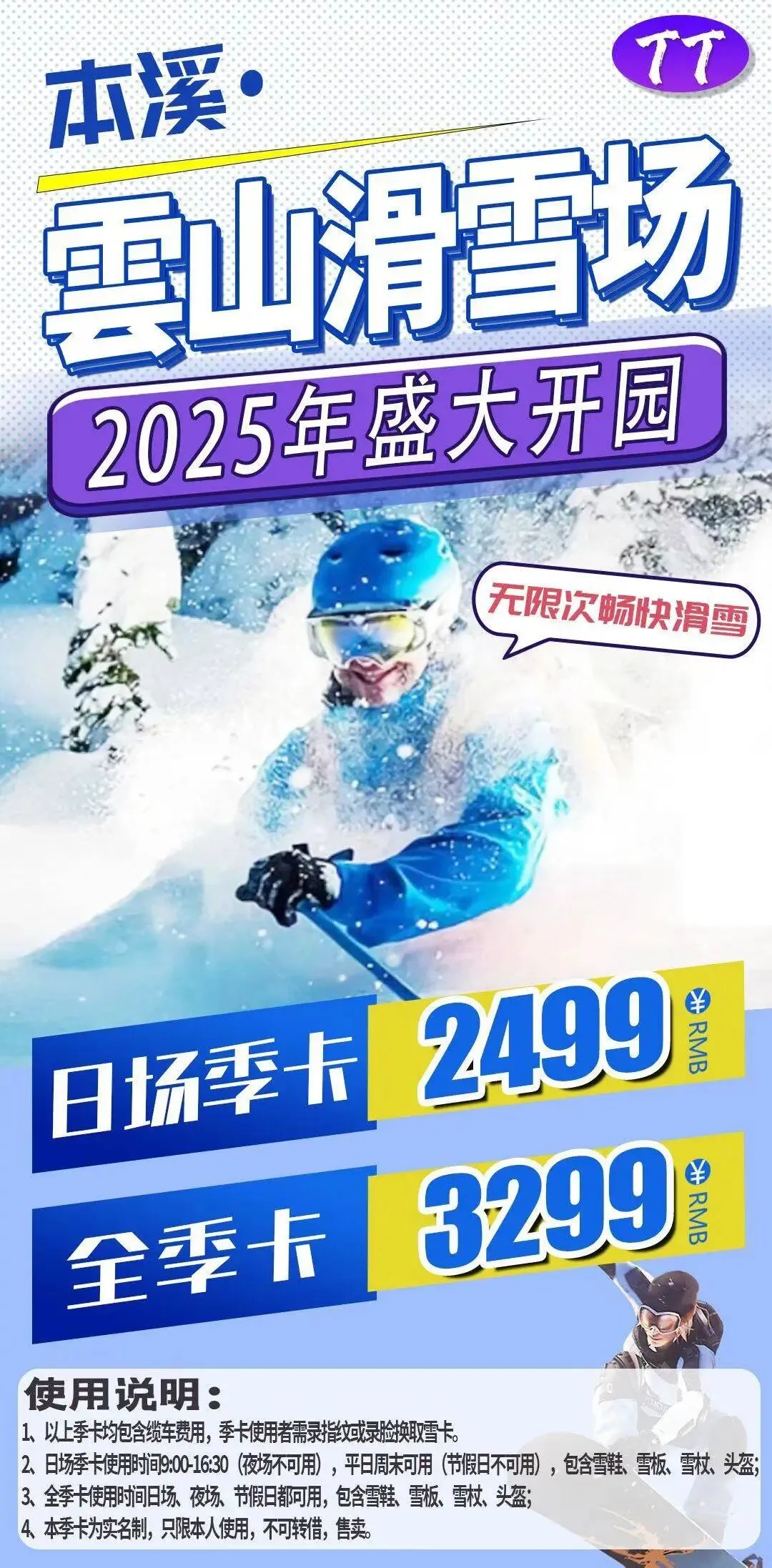 2026冬季滑雪戏雪景区汇总(五)本溪花溪沐温泉—雲山滑雪场成人135元/人(平日)