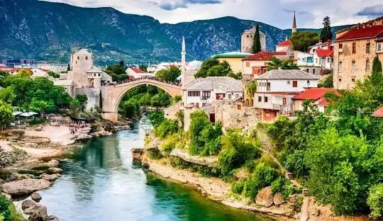 波赫的山中之城莫斯塔爾(Mostar),最有名的地標是 16 世紀建造的古橋,每年夏天當地人自橋上躍入河中,已成為傳統活動。