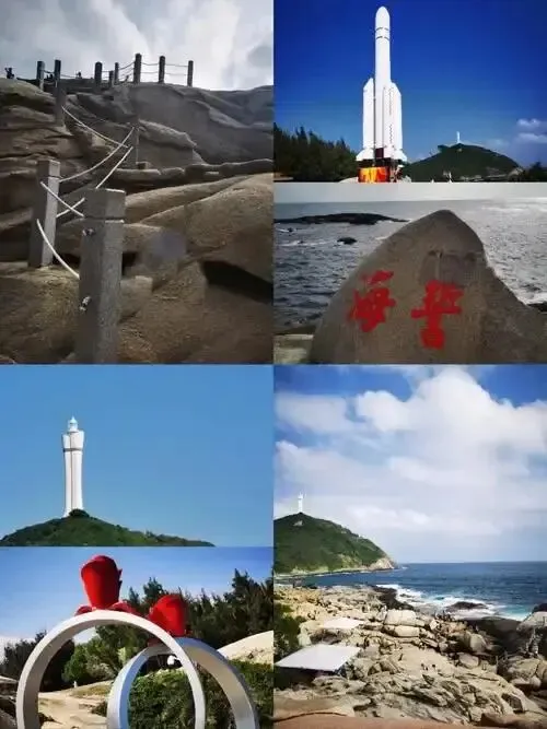 登顶远眺:可步行或乘观光车上山。站在山顶,180度无敌海景扑面而来:山下形似月牙的月亮湾、远处若隐若现的航天发射塔架、湛蓝无垠的南海,构成一幅壮阔画卷。