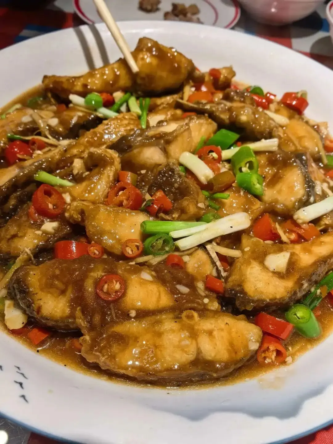太平桥底很多泥沙,不由自主想到的是淘金场景,不过我是真没体验过。 中午随便吃了点干粮,晚上住处附近溜达,去了三胖饭店,味道不错,就是萝卜皮干有点咸了,鸭肉里面加了红薯粉块块,这个菜相当入味,不过我真塞牙缝了,抠了半天:),最佳要属红烧鱼块,不仅看起来像心心念念的啤酒鱼,也吃出了桂林啤酒鱼的感觉,记得上一次吃啤酒鱼是和3个大学室友周末坐绿皮一整天穷游阳朔的时候了,感慨万千。