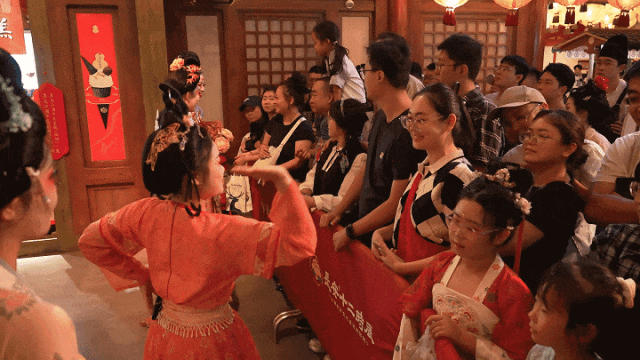 观看《霓裳羽衣舞》需排队,排队前可以问问负责现场秩序的武侯“现在可以排到哪一场”,方便做时间规划~