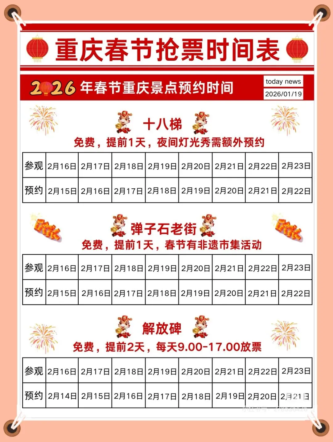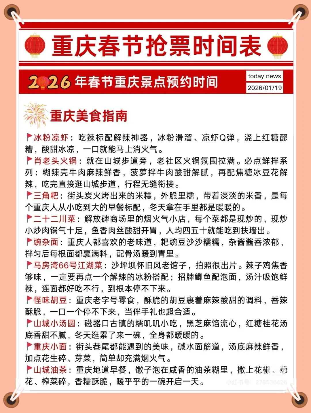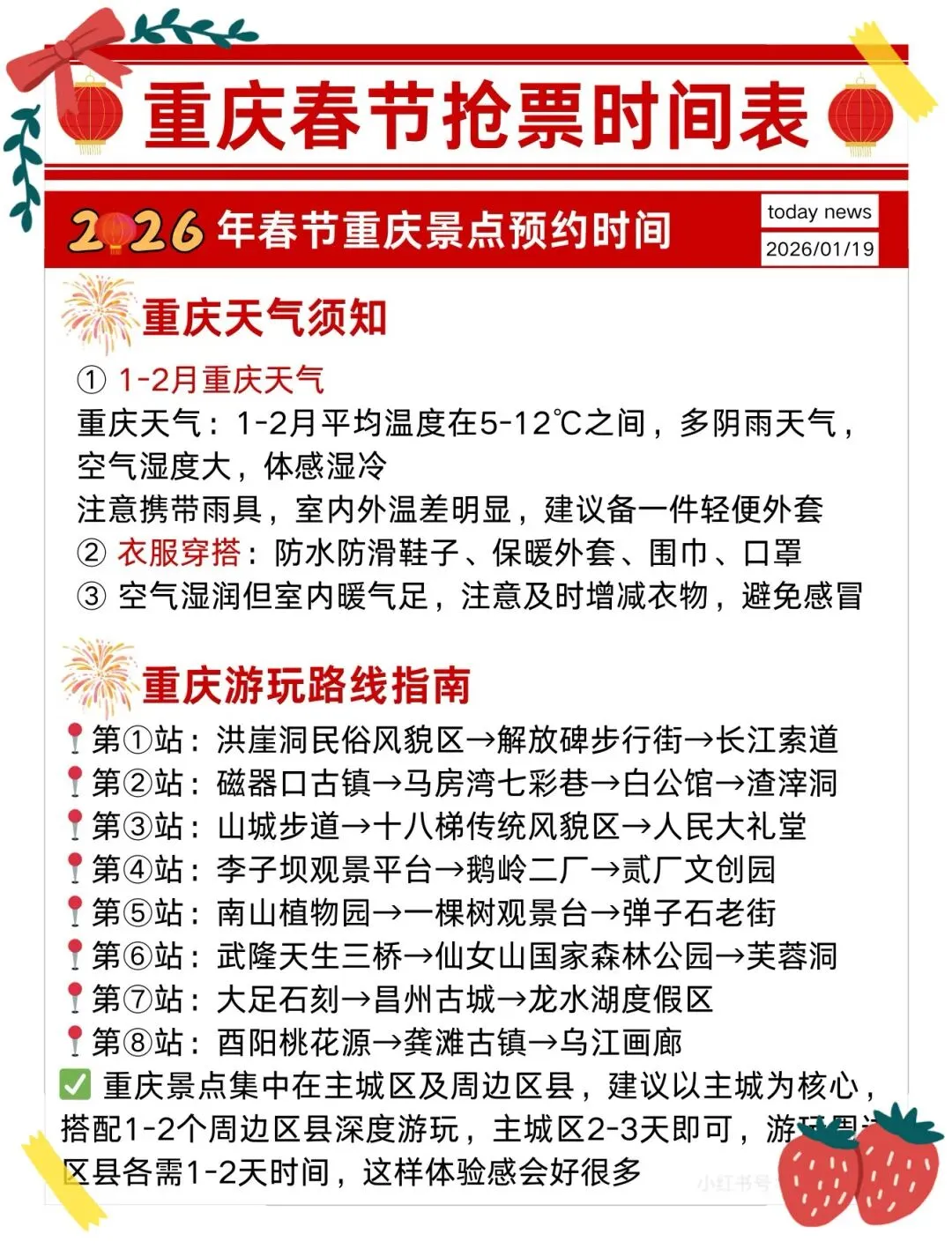 计划2026年春节来重庆旅游的姐妹们,千万要提前做好规划!尤其是一些热门景点🔥一定要提前约好门票,不然真的进不去😭