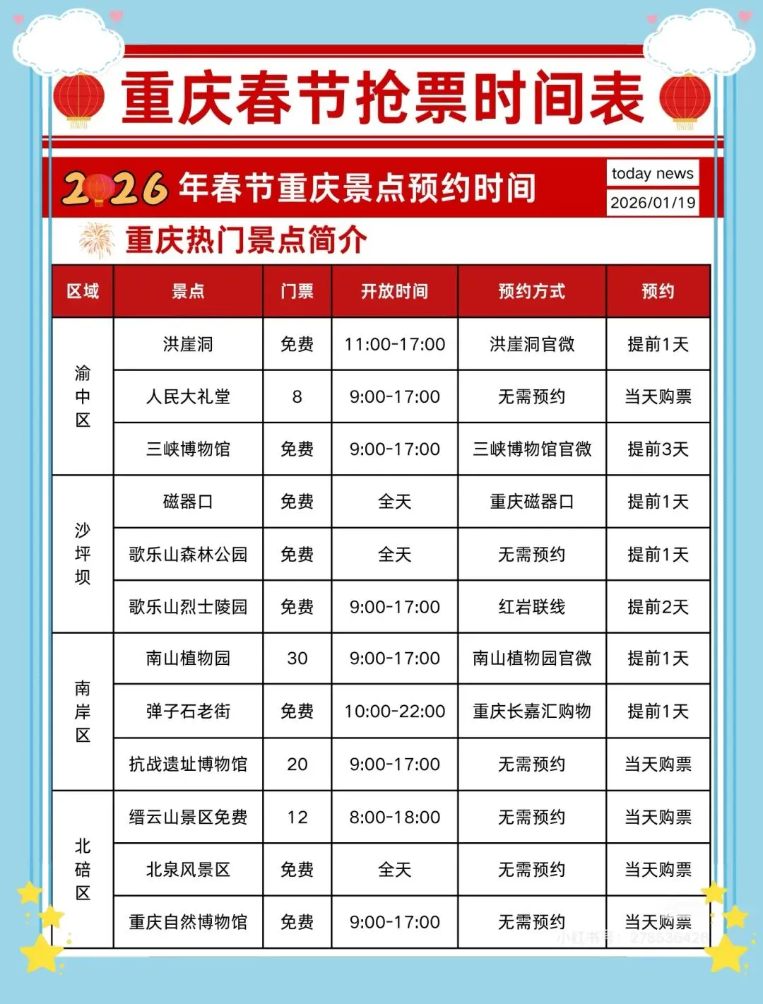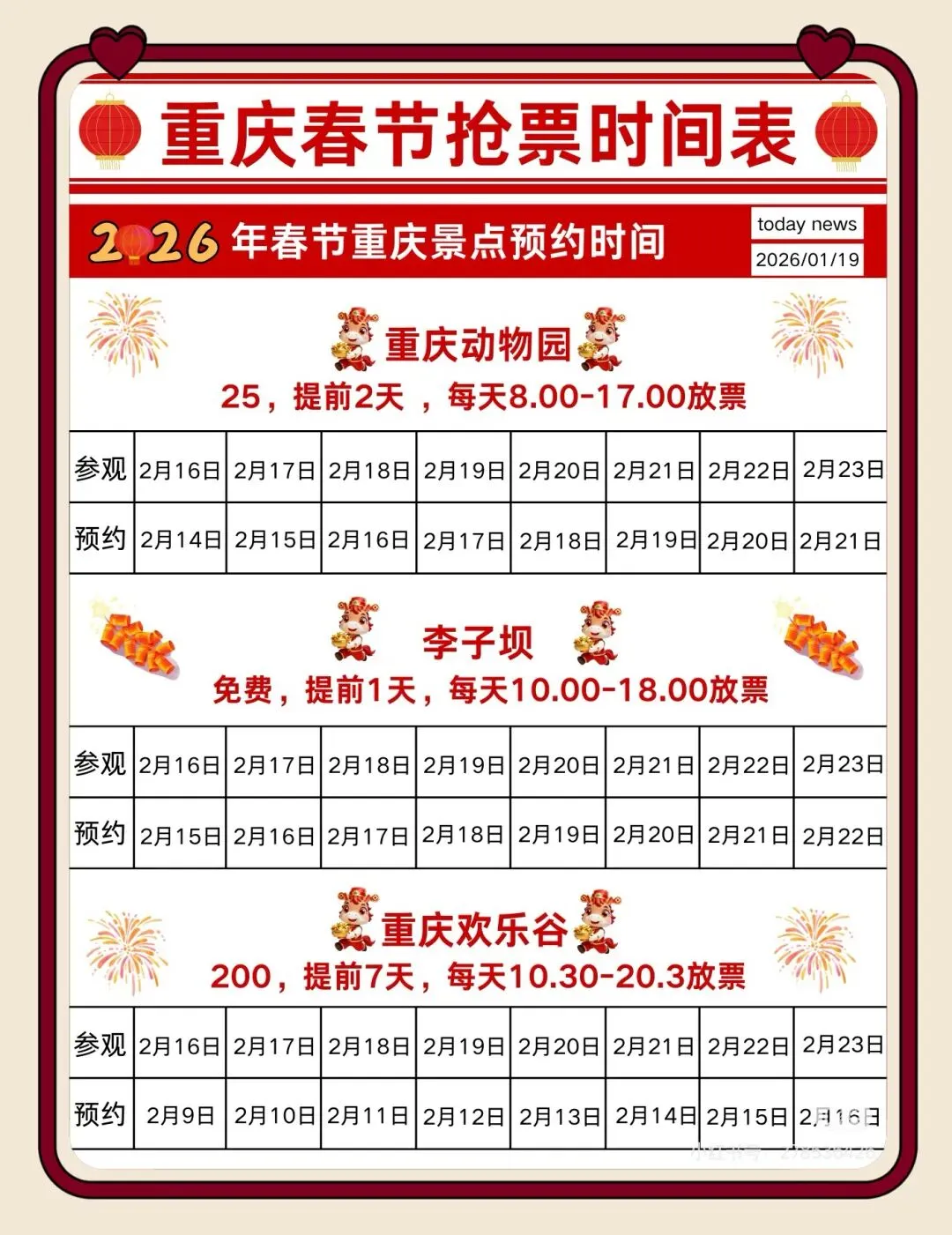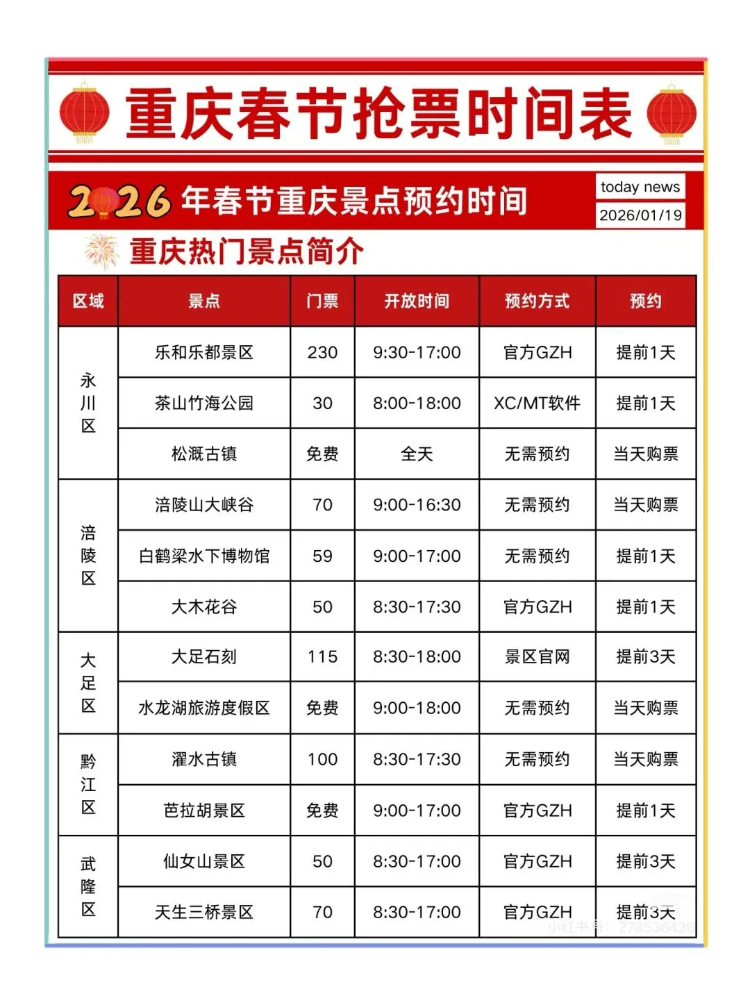 计划2026年春节来重庆旅游的姐妹们,千万要提前做好规划!尤其是一些热门景点🔥一定要提前约好门票,不然真的进不去😭