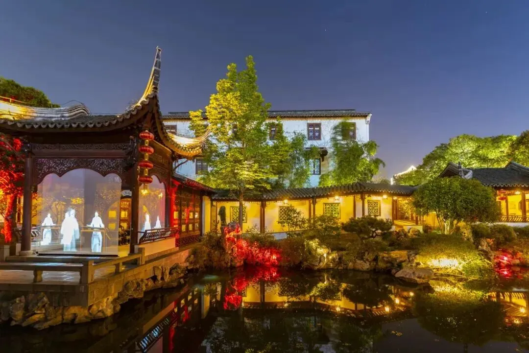 将传统演艺植入古典园林,结合瞻园廊、亭、厅的园林空间,沉浸式实景穿梭演出带领观众一夜赏尽四大名剧,走进诗情画意的金陵梦中景。